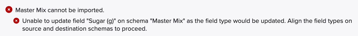 Red X’s: These indicate an issue that must be resolved before the migration can proceed. For instance, if schema field types need to be aligned manually, you will see a red X.