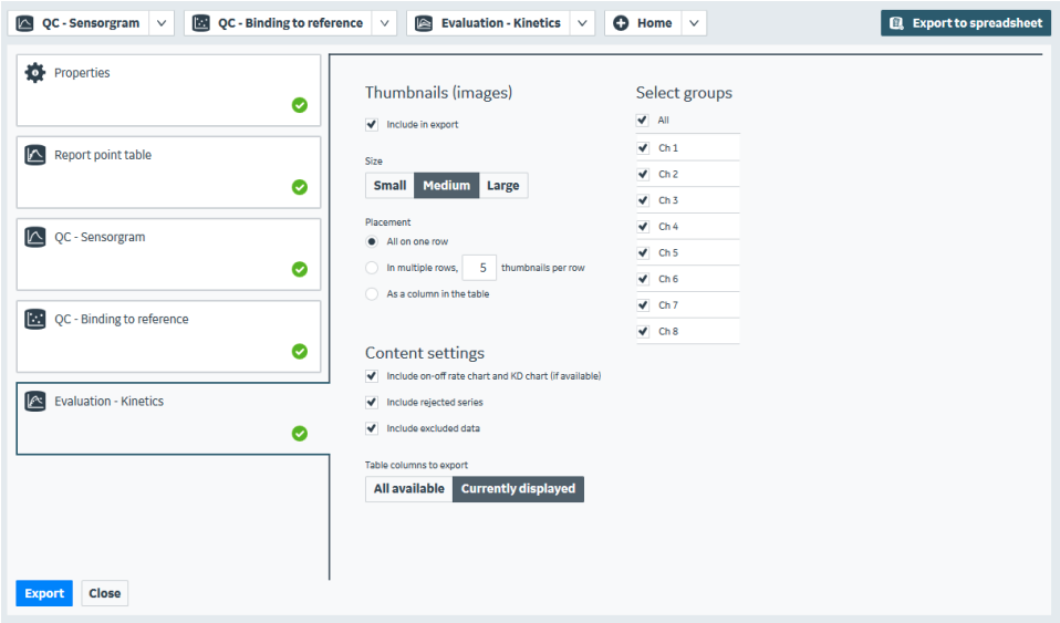Configuring .XLSX export from Biacore Insight