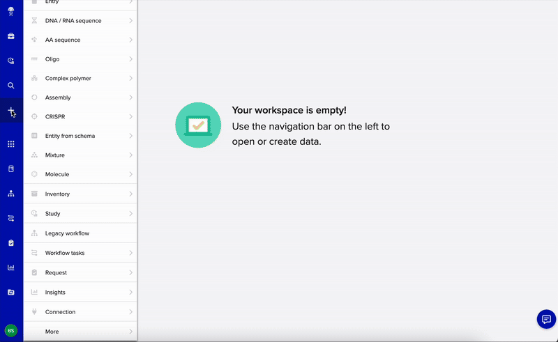- Click the + on the left-side menu. Under complex polymer, select an oligo conjugate or oligo duplex schema