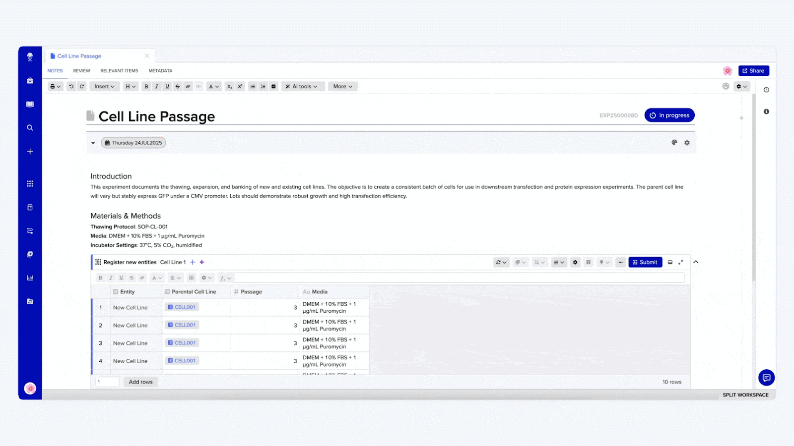 Benchling Notebook helps users log their experiments, create protocols, and capture results against their samples.