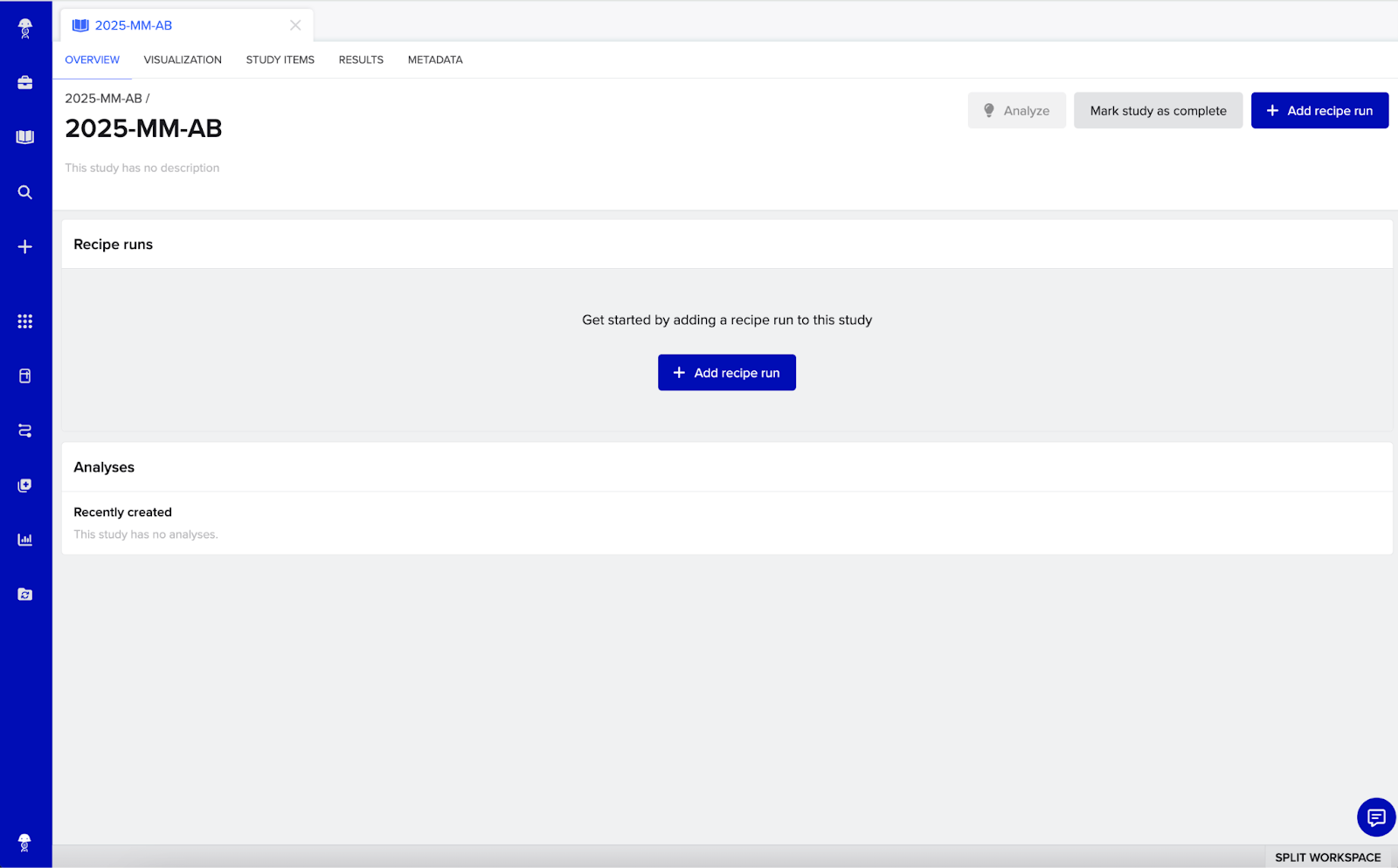 - Allows users to initiate new Recipe Runs and generate Study-wide Analyses.