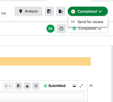 - Click the entry status in the header and select Send for Review