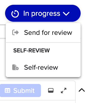 Self-Review Review Processes manifest as a single-click approval that will show up as a direct option under Send for Review. This will directly close out a Reviewable