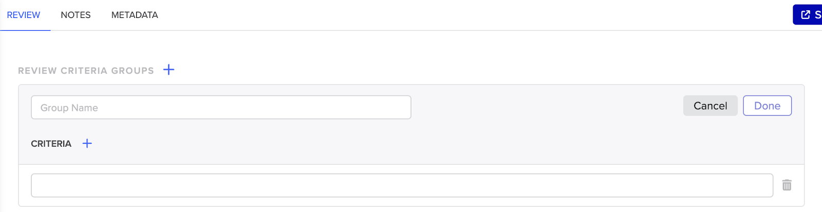 - Click the blue + icon next to Review Criteria Groups to add a new group