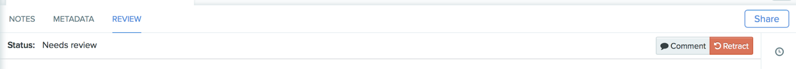 Note: After sending an entry for review, it becomes locked and cannot be edited unless the review is retracted.