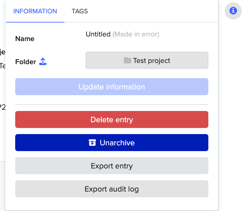 - Entry’s project folder – items will be associated with the folder that the Entry is in