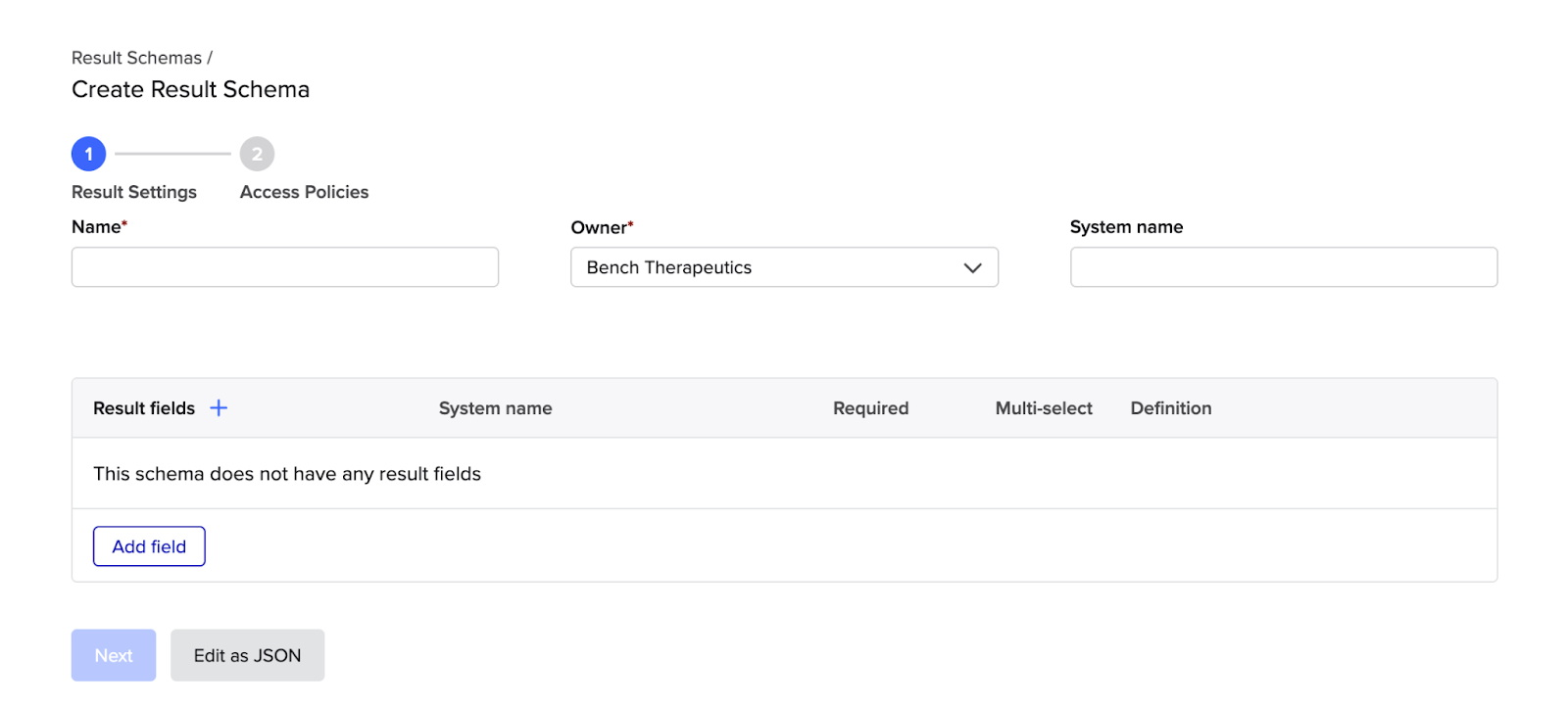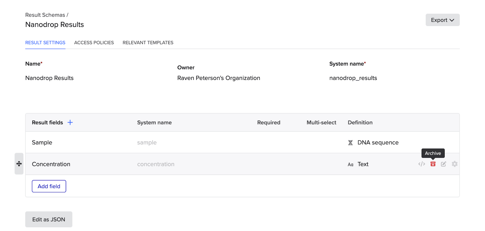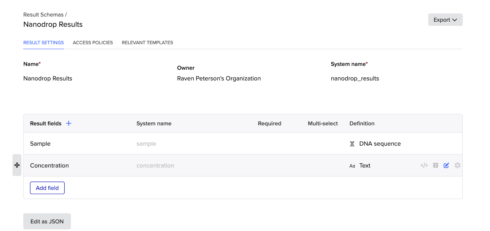 Result schemas are configured by organization-level admins or teams with admin privileges to meet your team’s specific needs based on the types of experiments and assays you perform.