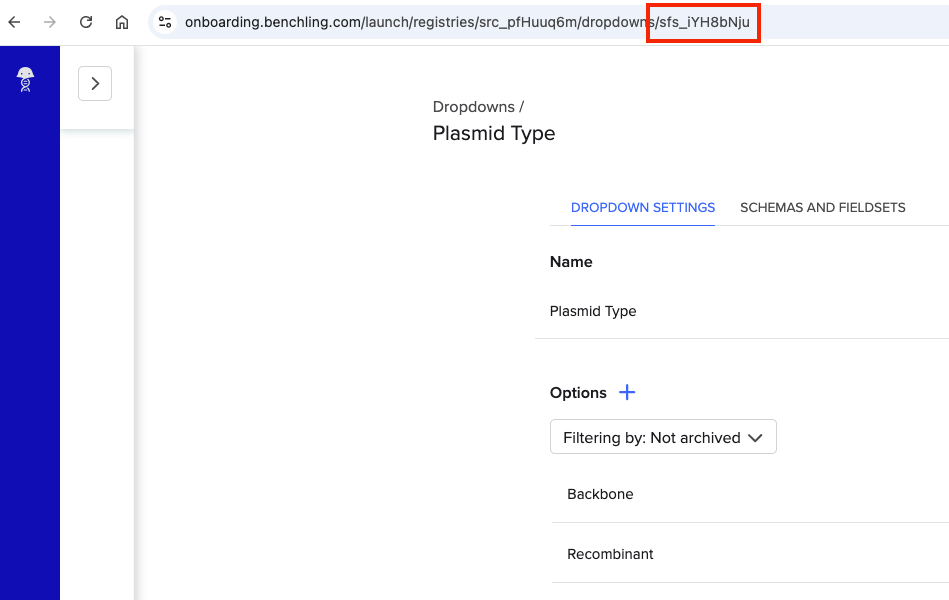 - Copy the end of the URL containing the dropdown ID. This begins with sfs_