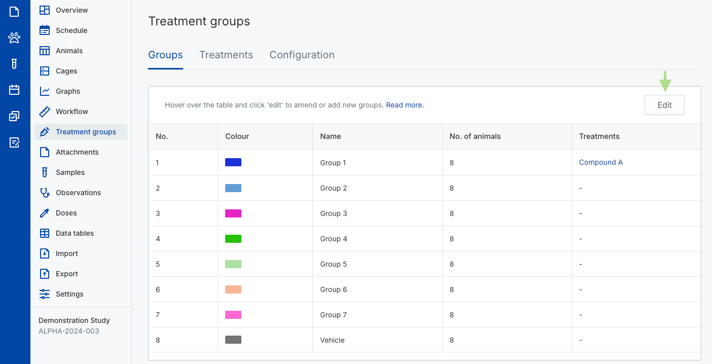 - In your study, click Treatment groups