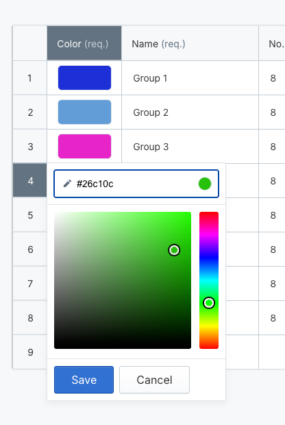 - Choose a color from the picker or enter a hex code
