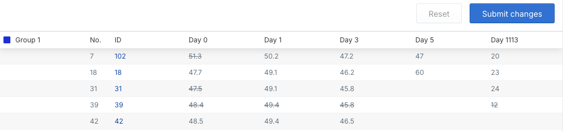 Benchling In Vivo makes it easy to visualize study data across animals and groups, so you can track results, spot trends, and make decisions faster.