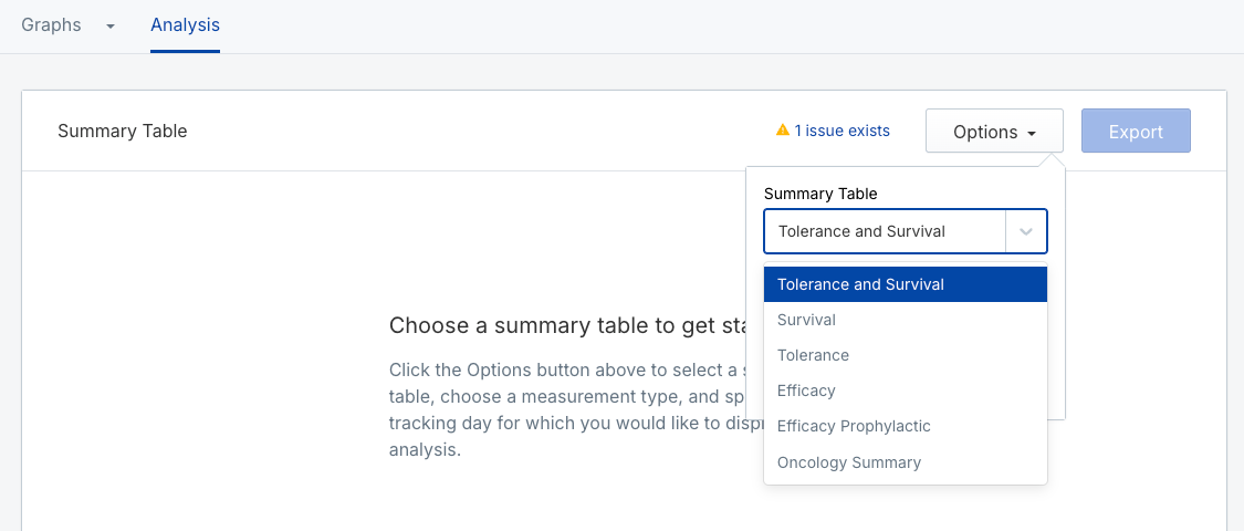 - In the Graph section of your study, generate a summary table