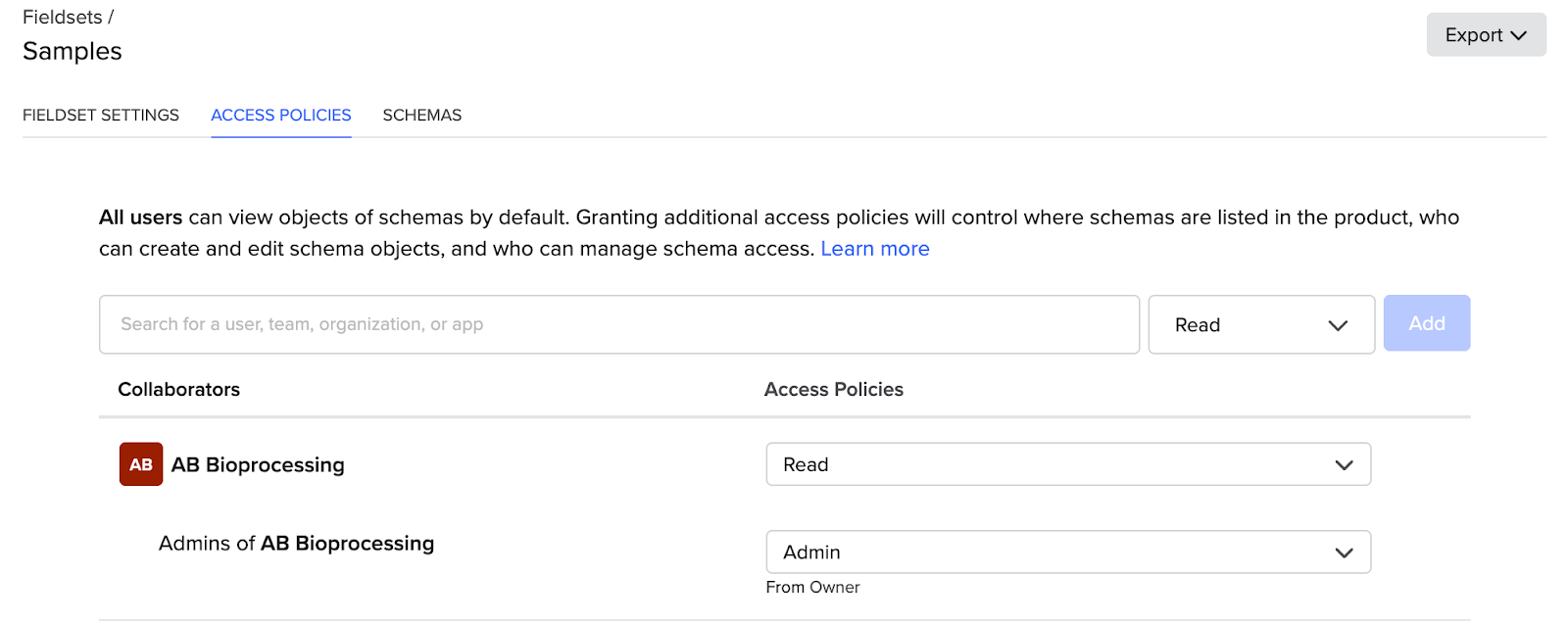 - Members of any Team with “Schema Permissions” enabled: Admin Policy
