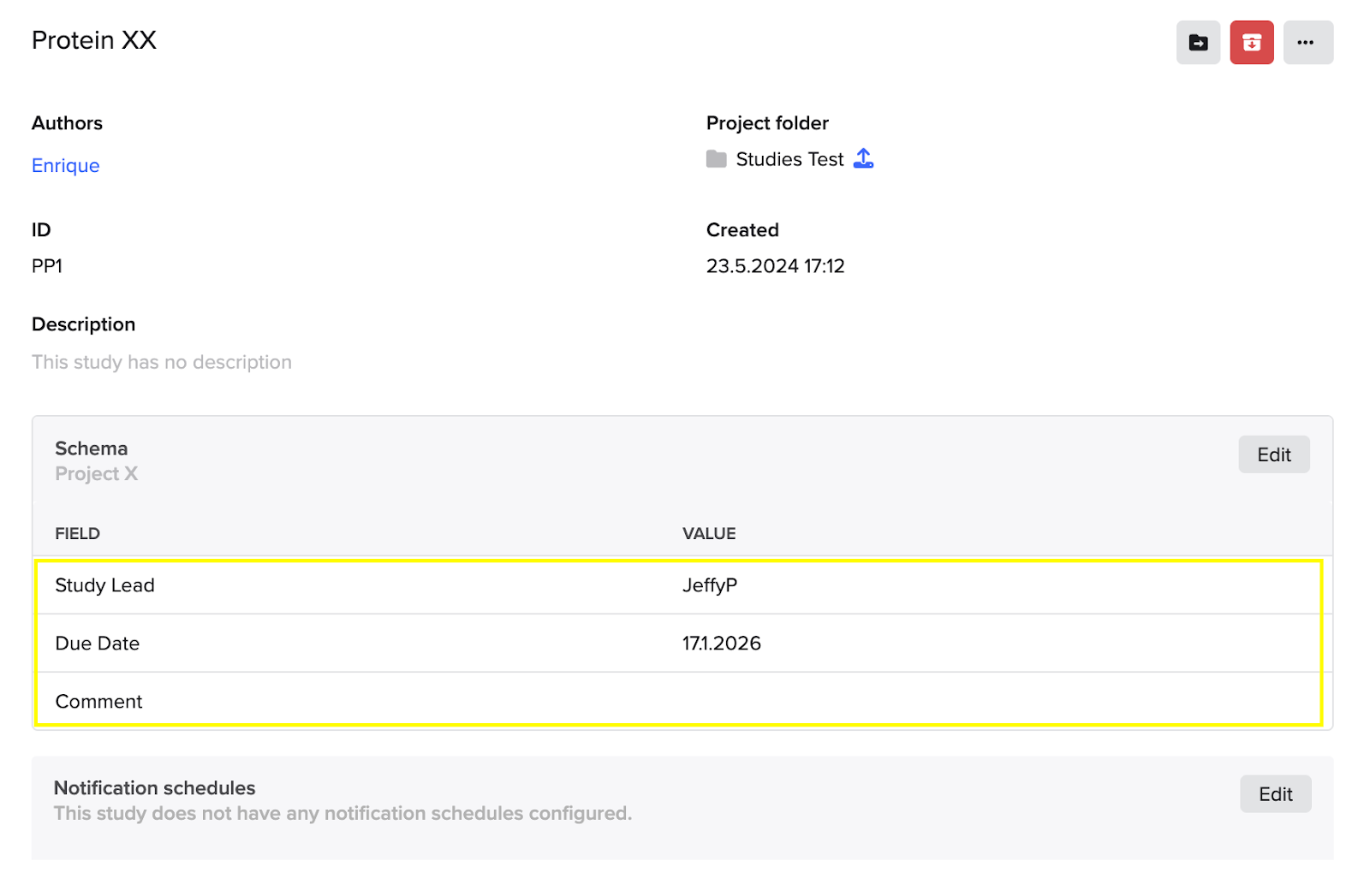 Benchling identified and resolved an issue where updates made to Study metadata fields on existing Studies were not saved. Although users received a saved completed confirmation message and saw the new values displayed in the UI, these changes were not visible to other users or after refreshing the page.This issue affected a limited number of users during the impacted time and has since been fully resolved.