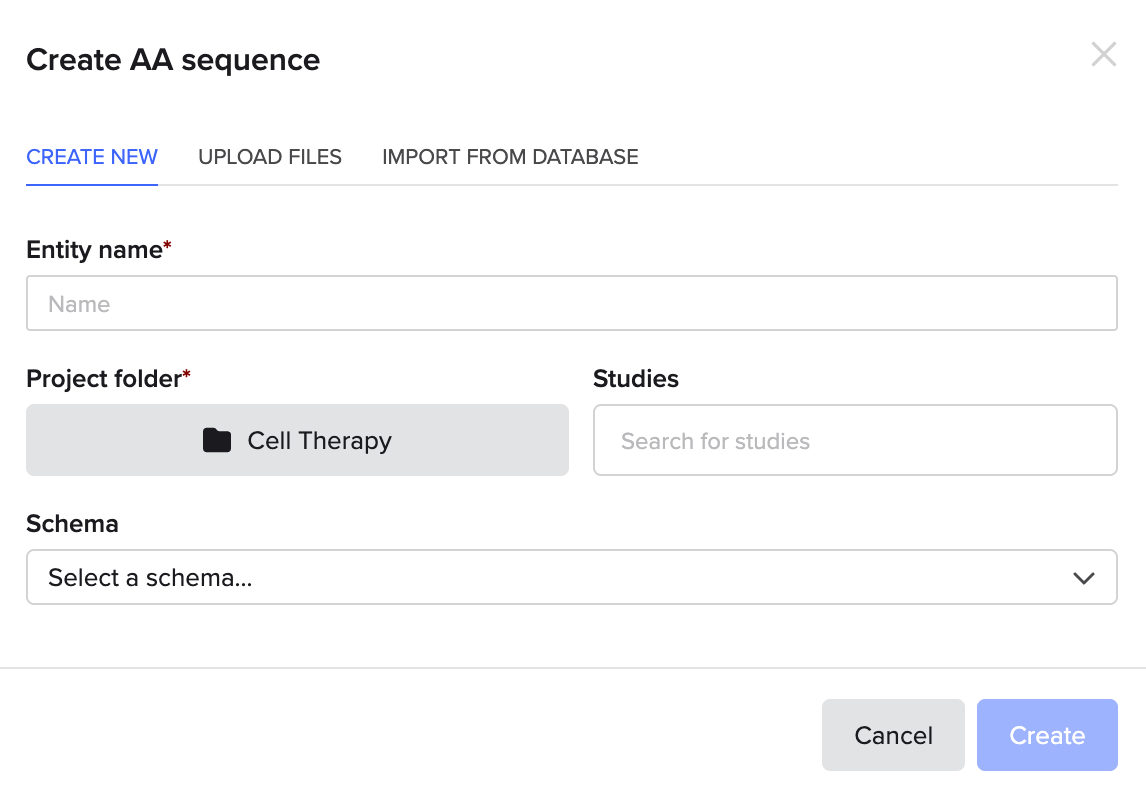 From global or project create, when users created "New AA sequences" or "Import AA sequences", we previously opened different modals. Now, these modals are consolidated into one with different tabs. That way, the user can choose any import method when creating new AA sequences, regardless of their starting point.