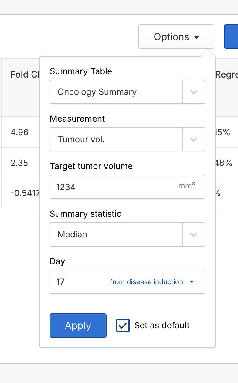Users can now save the summary table settings in the Analysis tab. This is saved for that study so that all users viewing this page will see the default summary table without needing to configure it fresh each time.