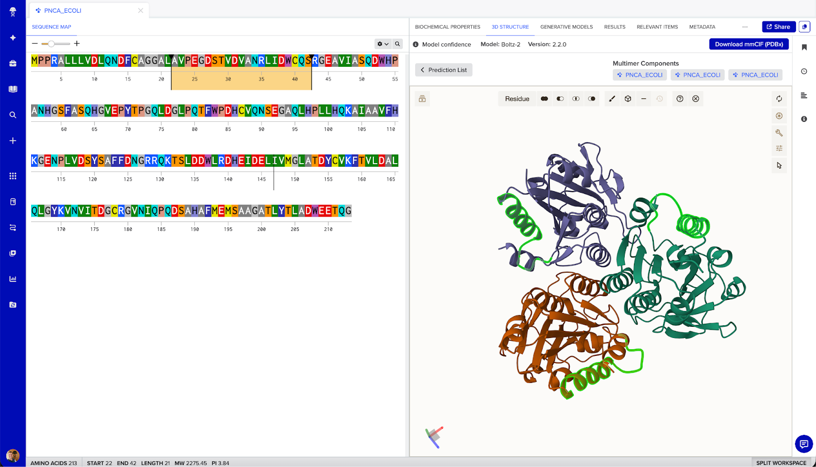 When viewing a multimer structure prediction on an AA sequence, users can now highlight a subsection of the sequence map and see the corresponding section highlighted across all copies of the sequence within the 3D Structure viewer.