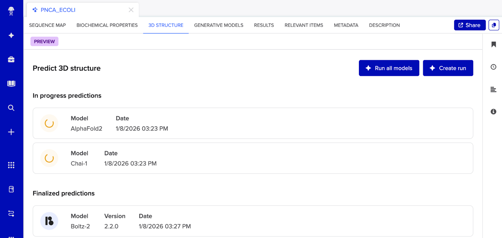This feature adds a button allowing a user to run structure prediction for an AA sequence using all models available to them.