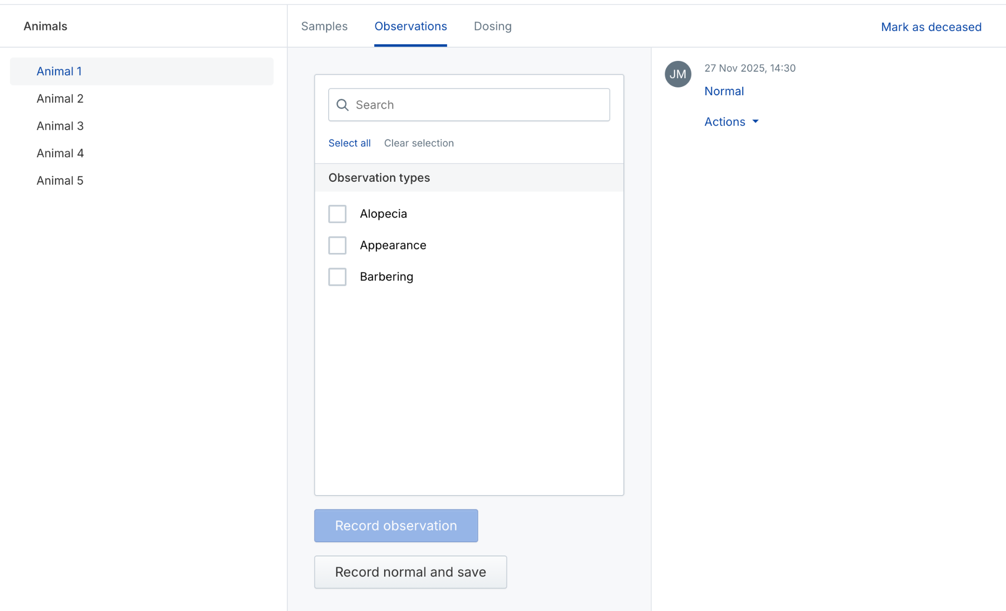 In Workflow, users can now add a timestamped ‘Normal’ observation with a single click and automatically advance to the next step, reducing the number of clicks needed to complete clinical observations.