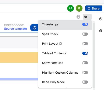 Each Entry is composed of individual components called NoteParts. A NotePart is an individual piece of content within a Notebook Entry, such as a text block, header, or table. Each NotePart maintains its own author and modification timestamp, visible in the left-hand margin when Timestamps are enabled via the gear icon. When a user edits a specific NotePart, only that NotePart reflects the updated author and modification timestamp. This is separate from the Entry version history, which displays successive Entry versions and reflects the most recent edit at the Entry level.