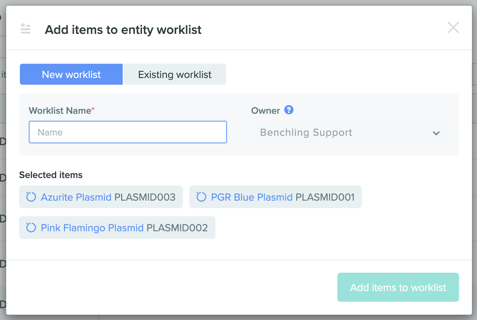 In the Add to Worklist modal, objects are now added to a new worklist by default. Previously, objects were added to an existing worklist by default.