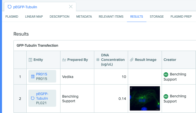 These new results tables functionally resemble registration and transfer tables for a consistent user experience across Benchling’s structured tables. Additionally, users can utilize new features, such as lookup columns, in these structured tables.