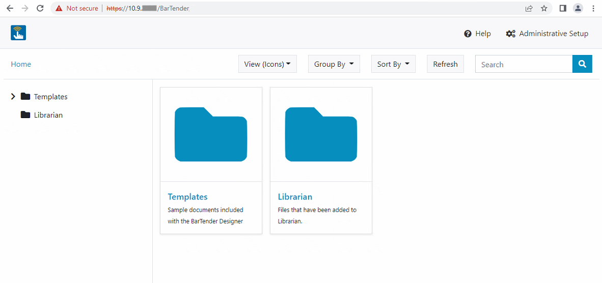 If the server status displays an error, ensure your browser can access the BarTender server by reviewing the configuration section above.
