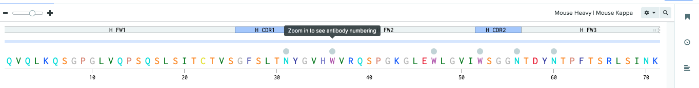 [Please Note - If the antibody numbering track isn’t showing the numbering index, zoom in on the sequence.]