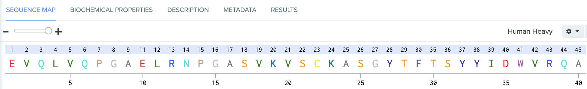 If you’ve created or imported antibody protein sequences in Benchling, our Antibody Property Prediction visualizations can help annotate certain antibody-specific information. In addition to providing basic protein analysis capabilities, Benchling can now automatically detect and annotate antibody chain variable domains with antibody numbering schemes, Complementarity Determining Regions (CDR) , framework (FW) regions, and potential sequence liability sites (PTMs).